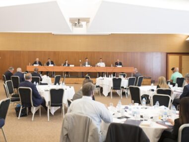 AmCham President Nikolaos Bakaselos, AmCham Executive Director Elias Spirtounias and U.S. Embassy representatives, Michele Siders, Political Counselor, Carl Watson, Deputy Economic Counselor, John Scimone, Major, U.S. Army, Army Programs Manager, Office of Defense Cooperation, Nick Papachryssanthopoulos Commercial Specialist, USCS Athens, U.S. Embassy provided a thorough review of Greece’s current status to the US Pavilion exhibitors.